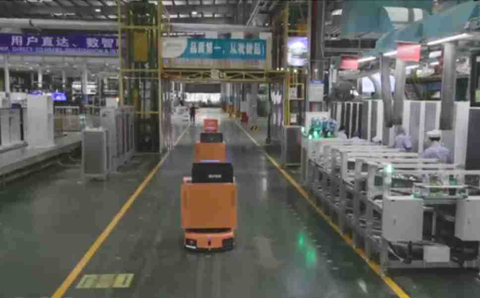 为车载冰箱物流配送打造的智能解决方案,,,包含产中物流通过潜伏举升AMR搬运至线边,,,,产后成品物流智能仓储,,,,流程包含产中物流智能齐套入库,,,,线边安灯叫料AMR智能配送至线边,,,,成品入库、、、、出库,,,通过无人堆高车机器人,,,,智能仓储管理替代人工作业管理,,,实现更高存储、、、、更高效率、、更具柔性化的解决方案。。。